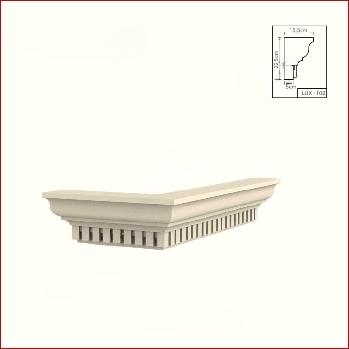 • Fasadne potkrovne lajsne su ojačane posebnim premazom od cementa i kvarca, farbaju se fasadnim bojama.