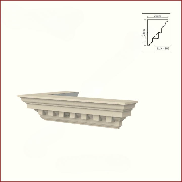 • Fasadne potkrovne lajsne su ojačane posebnim premazom od cementa i kvarca, farbaju se fasadnim bojama.