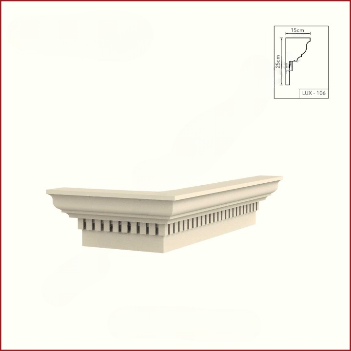 • Fasadne potkrovne lajsne su ojačane posebnim premazom od cementa i kvarca, farbaju se fasadnim bojama.